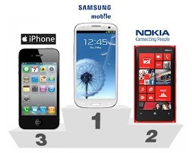 وقالت “IHS iSuppli” أن الشركة الكورية تفخر بصناعتها لأفضل الهواتف الذكية، التي ساهمت في ارتفاع نسبة شحناتها من 20% إلى 28% في السوق، متفوقة على نظيرتها “نوكيا” التي انخفضت نسبتها من 16% إلى 5% لتجعلها في المركز الثالث بعد “آبل” الأمريكية، وقبل “إتش تي سي” التايوانية و “ريم” RIM الكندية.