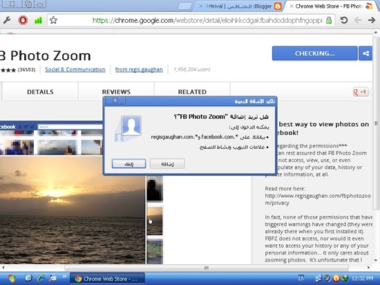 أولاً : قم بتثبيت هذة الاداة fb photo zoom . الإضافة تعمل مع جوجل كروم .