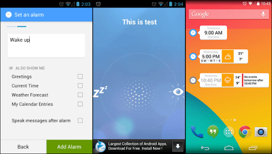 واجهة المستخدم البسيطة من AlarmPad ليست من المرجح أن تدهشك، ولكن التطبيق يسمح لك بتعيين الإنذارات للحصول على تنبيهات حول بعض التنبؤات الجوية، الجدول الزمني للأحداث، أو ببساطة للحصول على منبه للنهوض في الصباح. يمكنك أيضا تعيين التطبيق لقراءة الرسائل المحددة من قبل المستخدم عند التنبيه